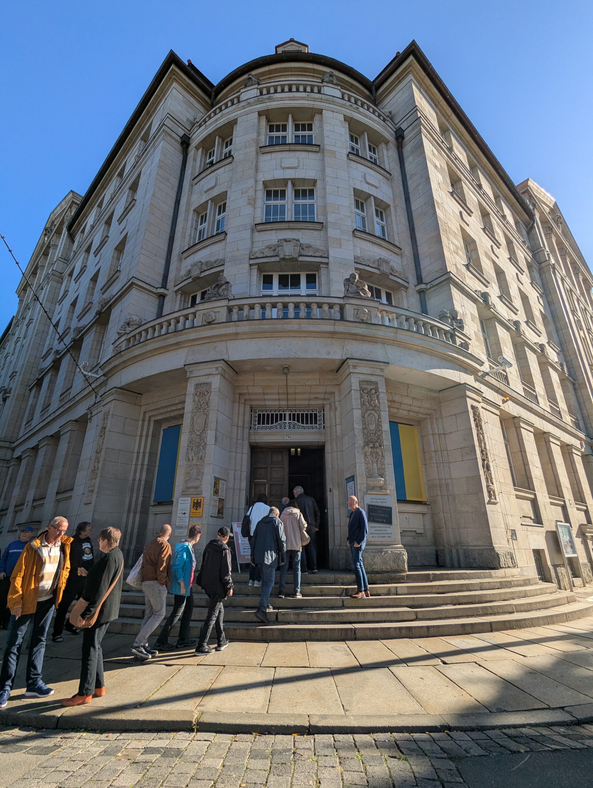 Am Nachmittag nahmen wir an einer geführten Stadtrundfahrt teil, die uns Teile der Altstadt von Chemnitz mit Justiz-Viertel auf dem Kaßberg sowie dem sieben Meter hohen Monument von Karl Marx (unter Chemnitzern als „Kopp“ bekannt) zeigte. Den Abend haben wir bei interessanten Gesprächen und einem gemeinsamen Essen ausklingen lassen.